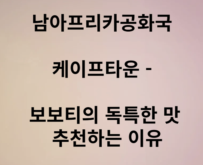 케이프타운의 보보티는 단순한 요리를 넘어, 그 자체로 하나의 문화와 역사를 담고 있어요. 이 독특한 맛을 경험하는 것은 남아프리카를 여행하는 것과 같은 특별한 경험이죠. 보보티를 통해 케이프타운의 매력을 느껴보세요. 여러분도 이 맛의 세계에 빠져들게 될 거예요.