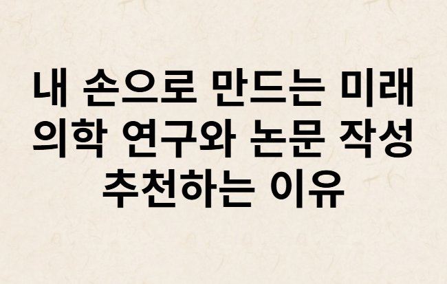 이 글이 의학 연구와 논문 작성의 중요성을 이해하는 데 도움이 되었기를 바랍니다. 여러분도 이 여정에 동참하여, 인류의 건강을 위한 기여를 해보세요.