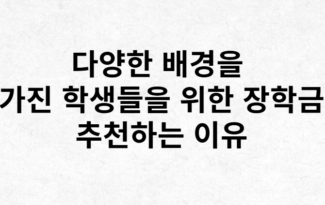 다양한 배경을 가진 학생들을 위한 장학금은 단순한 금전적 지원을 넘어, 그들의 꿈과 희망을 실현하는 데 중요한 역할을 해요. 이러한 장학금은 교육의 기회를 확대하고, 사회적 불평등을 해소하는 데 기여할 수 있죠. 학생들이 자신의 능력을 최대한 발휘할 수 있도록 돕는 장학금은, 결국 더 나은 사회를 만드는 데 기여할 수 있어요. 다양한 배경을 가진 학생들이 자신의 꿈을 이루는 데 필요한 지원을 받을 수 있도록, 우리는 더욱 노력해야 해요.