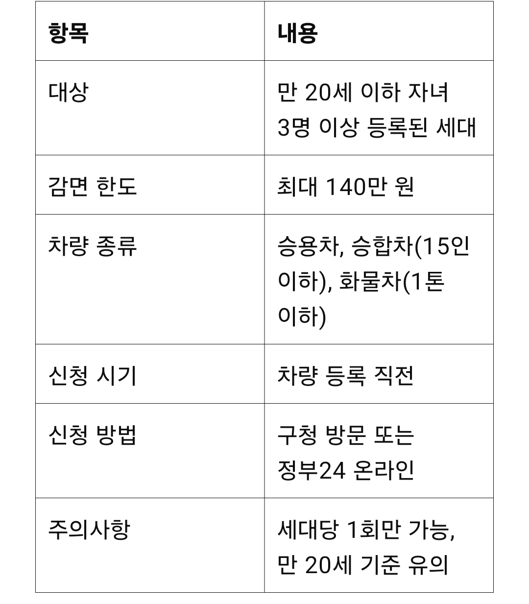다자녀 혜택은 세대당 1회만 적용 가능