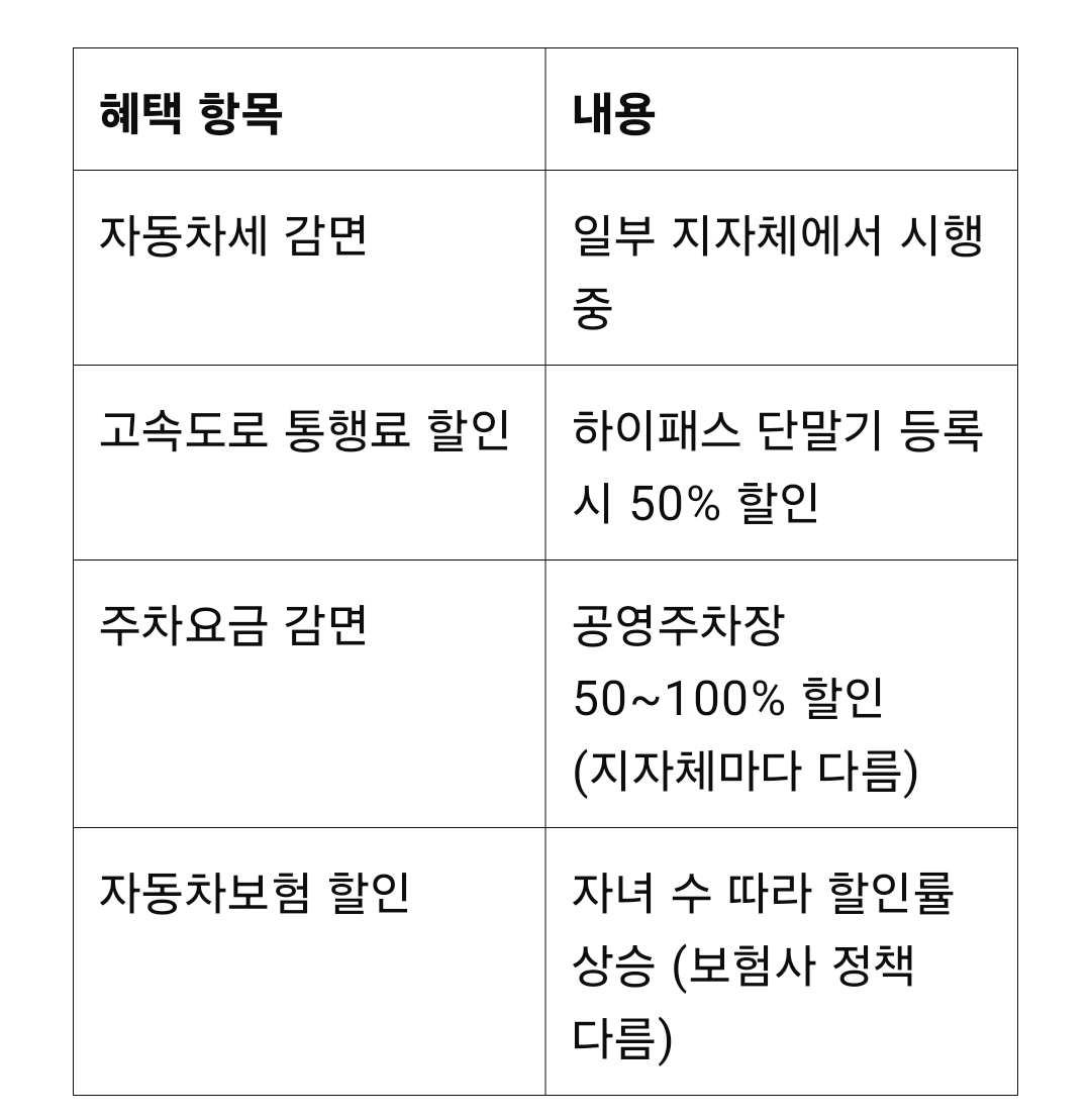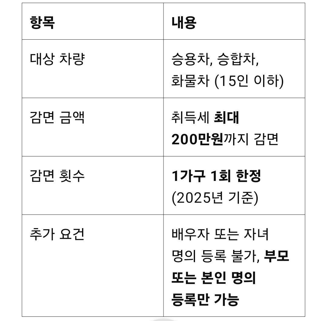주의할 점은, 배기량이나 차량 가격 제한은 없지만, 고가 수입차는 일부 지자체에서 감면 대상에서 제외될 수 있으니 사전 문의가 필요합니다.