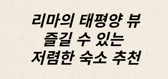 리마의 태평양 뷰를 즐기며 잊지 못할 추억을 만들어보세요. 저렴한 숙소에서 시작하는 멋진 여행을 기대해보세요!