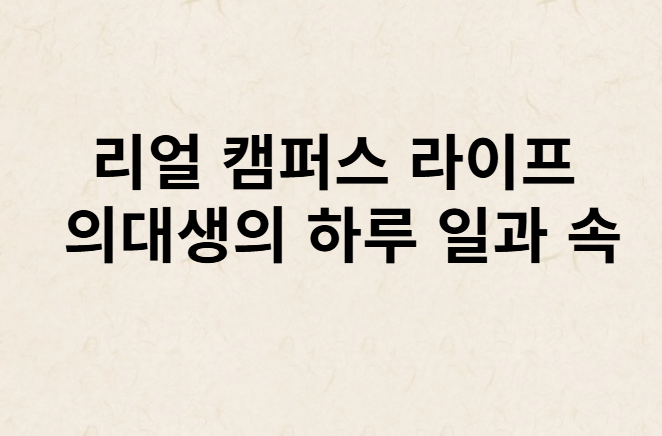 이 글을 통해 의대생의 하루 일과를 이해하고, 그들의 리얼 캠퍼스 라이프를 느껴보세요. 그들의 열정과 노력은 미래의 의사로서의 길을 더욱 빛나게 할 거예요.