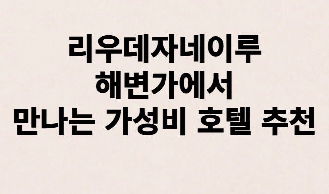 리우데자네이루의 해변가에서 만나는 가성비 호텔은 여행자들에게 편안함과 즐거움을 동시에 제공해요. 합리적인 가격에 좋은 숙소를 선택하면, 더 많은 경험을 할 수 있어요. 리우데자네이루의 아름다운 해변과 다양한 액티비티를 즐기며, 잊지 못할 여행을 만들어보세요.