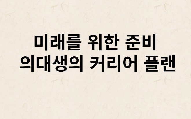 1. 의대생의 커리어 플랜이란?