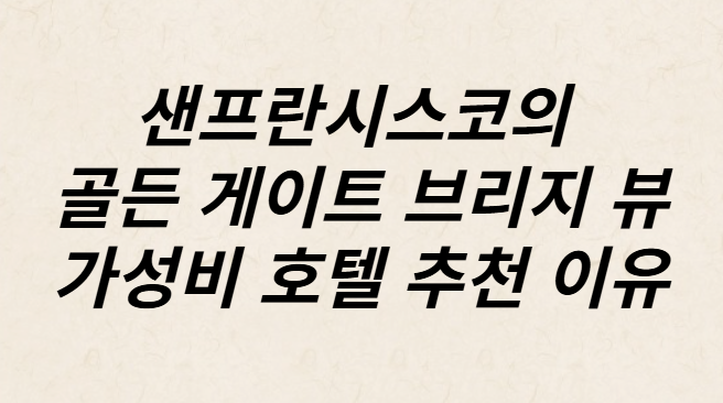 이제 샌프란시스코에서 골든 게이트 브리지의 뷰를 즐길 수 있는 가성비 좋은 호텔 몇 곳을 추천해드릴게요.