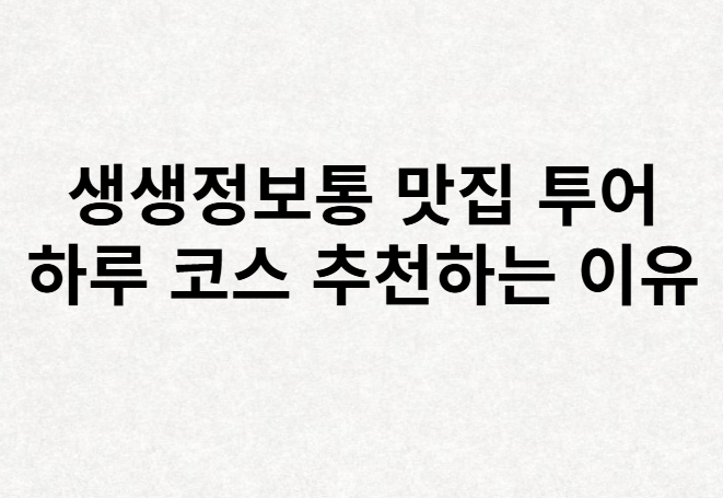 생생정보통의 맛집 투어는 단순한 식사를 넘어, 문화와 감성을 나누는 경험이에요. 하루 코스를 통해 여러분은 다양한 맛을 경험하고, 새로운 발견을 할 수 있죠. 맛집 탐방은 여러분의 일상에 행복과 즐거움을 더해줄 거예요.
