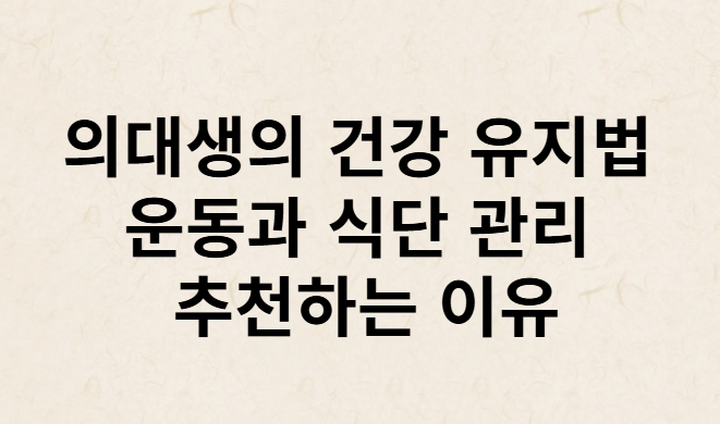\의대생으로서의 삶은 지식의 바다를 항해하는 것과 같습니다. 하지만 이 과정에서 신체적, 정신적 건강을 유지하는 것은 매우 중요해요. 많은 학생들이 학업에 집중하느라 자신의 건강을 소홀히 하는 경우가 많지만, 운동과 식단 관리를 통해 건강을 유지하는 것은 필수적이에요. 이번 글에서는 의대생이 건강을 유지하기 위한 방법으로 운동과 식단 관리의 중요성을 다뤄보려고 해요.