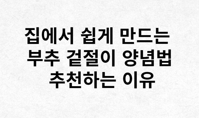 | 부추 겉절이 양념 황금 레시피의 추천하는 이유 (1) | 2024.11.12 |