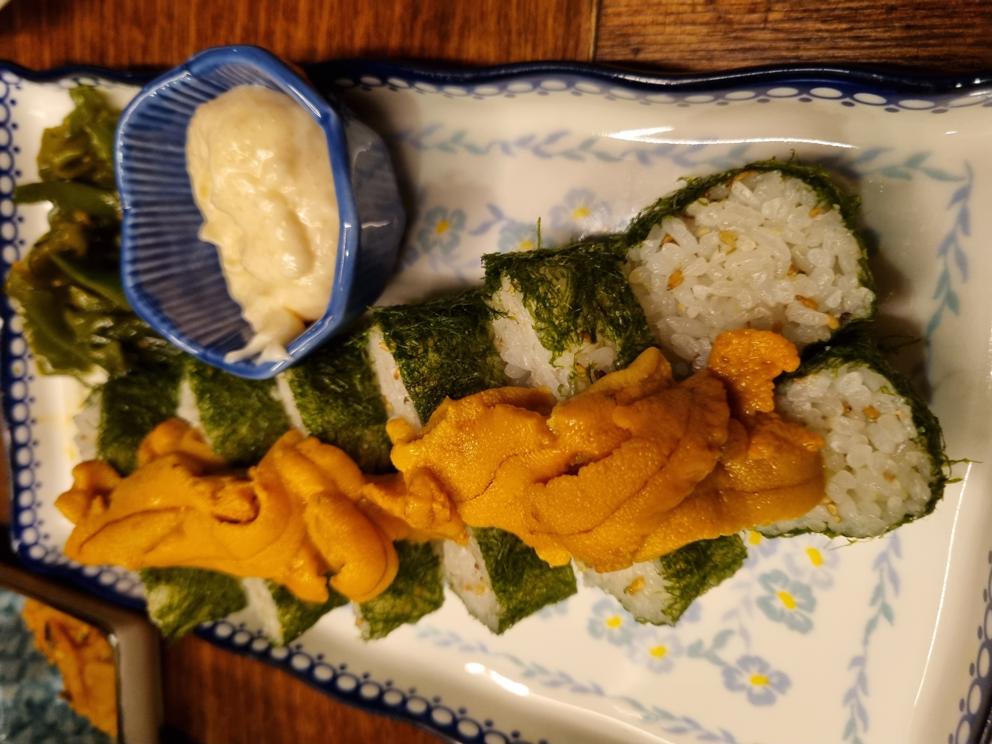 유부마끼: 참치와 우니를 유부로 감싼 특별한 마끼로, 겉은 토치로 살짝 구워져 독특한 풍미를 자랑합니다.