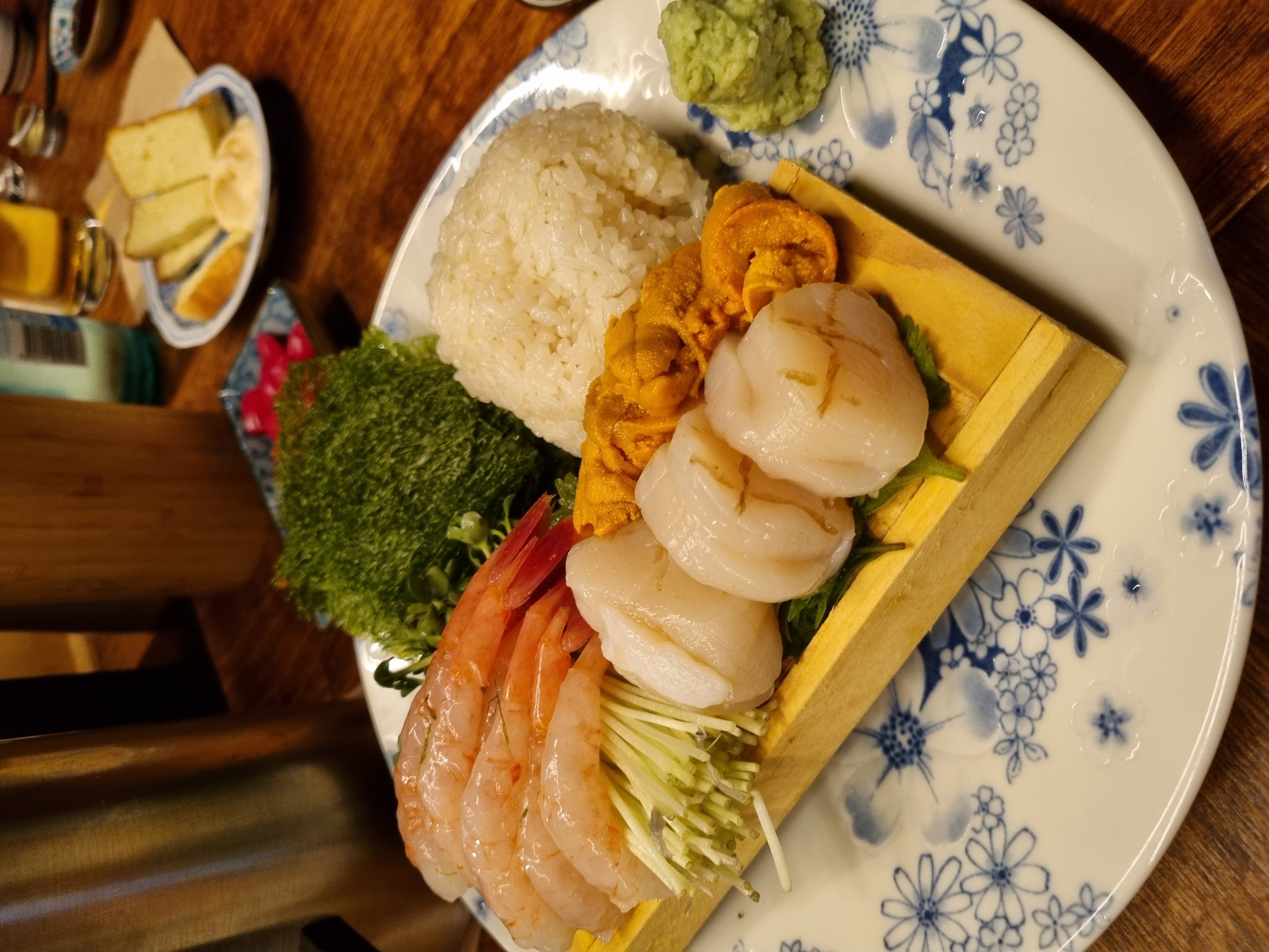 ✅ 우니 모듬 사시미 – 성게알(우니)이 들어간 모듬 사시미로, 신선한 해산물의 맛을 제대로 느낄 수 있습니다. 우니는 비린 맛 없이 고소함이 강하며, 함께 제공되는 사시미와의 조화가 훌륭합니다.