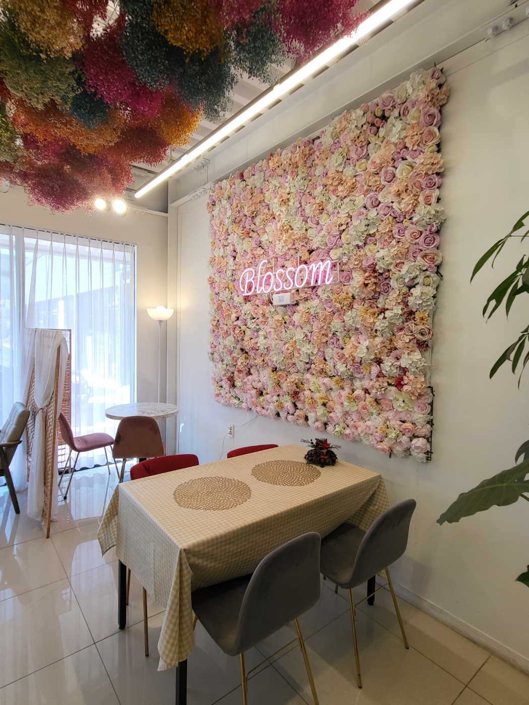 간판에서 눈이 띄었으며, 실내 인테리어는 꽃밭이였다고 표현을 할수 있겠습니다. 꽃을 말려서 천장에 많이 걸어두셔서
