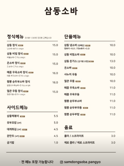 삼동소바 판교점은 다양한 종류의 소바 메뉴를 자랑합니다.