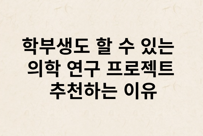2. 학부생이 참여할 수 있는 의학 연구 프로젝트의 종류