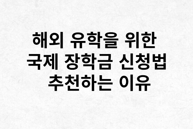 해외 유학은 많은 학생들에게 꿈과 같은 기회입니다. 하지만 그 꿈을 이루기 위해서는 경제적인 부담이 큰 장애물로 다가오곤 해요. 이럴 때 국제 장학금은 학생들에게 희망의 빛과 같은 존재가 됩니다. 이번 포스팅에서는 해외 유학을 위한 국제 장학금 신청법에 대해 자세히 알아보도록 할게요.