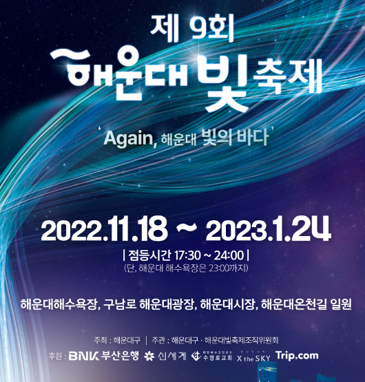 해운대의 대표적인 겨울축제로 자리매김하고 있는 "제9회 해운대 빛 축제"가 2022년 11월 18일부터