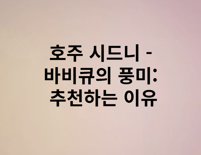 호주 시드니에서의 바비큐는 단순한 식사가 아닌, 문화와 전통이 어우러진 특별한 경험입니다. 다양한 종류의 바비큐와 함께하는 음료, 그리고 그 속에서 느끼는 사람들과의 유대감은 잊지 못할 순간으로 남을 것입니다. 시드니를 방문할 기회가 있다면, 꼭 바비큐의 풍미를 경험해보세요. 그 맛과 향은 여러분의 기억 속에 깊이 새겨질 거예요.