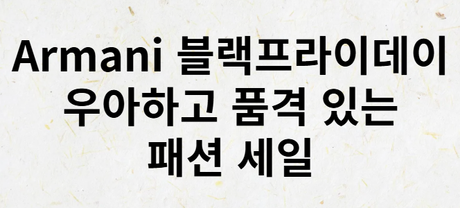 Armani 블랙프라이데이는 단순한 세일이 아닙니다. 우아함과 품격을 동시에 느낄 수 있는 특별한 기회죠. 이 기회를 통해 여러분의 스타일을 한층 업그레이드하고, 자신만의 매력을 발견해보세요.