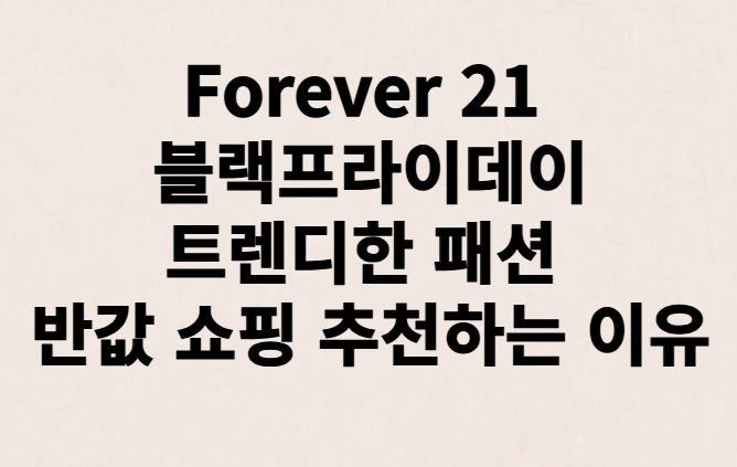 Forever 21의 블랙프라이데이는 트렌디한 패션을 반값에 쇼핑할 수 있는 최고의 기회에요. 다양한 할인 혜택과 한정판 아이템을 통해 스타일을 업그레이드할 수 있는 절호의 찬스죠. 이번 블랙프라이데이에는 Forever 21에서 멋진 패션 아이템을 만나보세요!